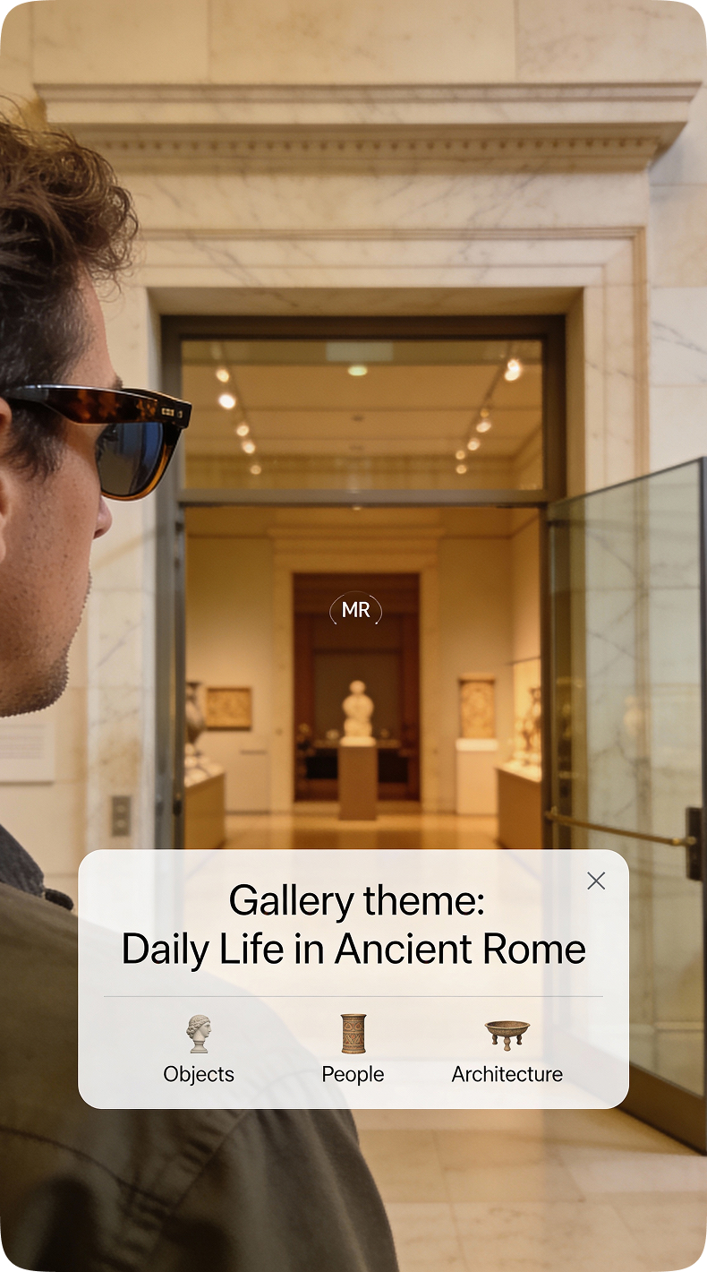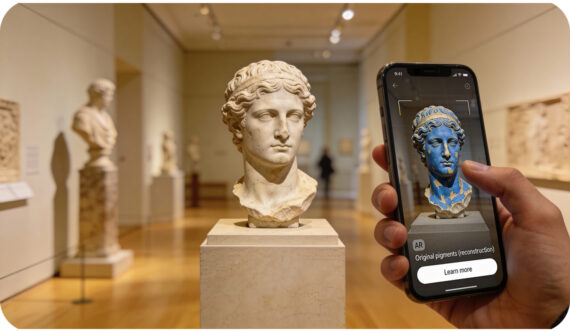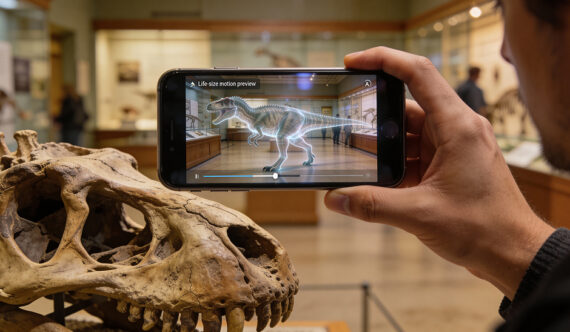 We animate the inanimate. Visitors can point their phones at a historic fossil to see the creature walk, or scan a ruin to see the temple rebuilt in its original glory, providing instant context.