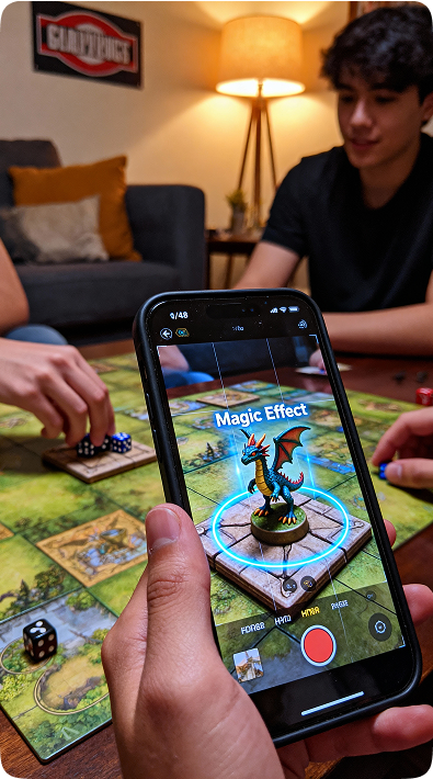 We create a frictionless entry point for mass audiences. By letting fans step directly into your world using only their smartphone camera, we eliminate the need for cumbersome downloads or dedicated hardware. These custom, branded AR environments—be it a spaceship bridge from your new series or a virtual stage for your concert—turn a fan’s living room into a digital extension of your show, game, or album. This immediacy increases shareability and emotional engagement far beyond traditional trailers.