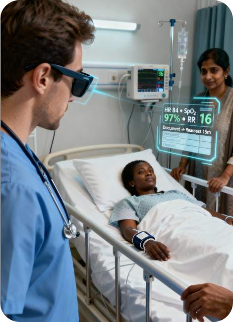 AR can deliver information inclusively with captions, audio narration, and high-contrast visuals. This ensures critical safety and care information can be understood universally, eliminating dangerous communication gaps.